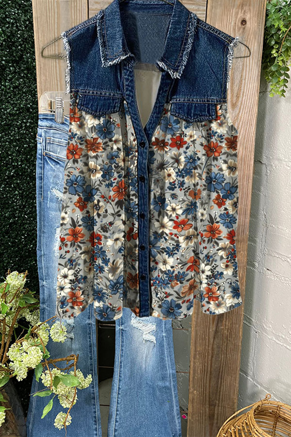 Floral Solid Color Pleated Puff Sleeve Blouse