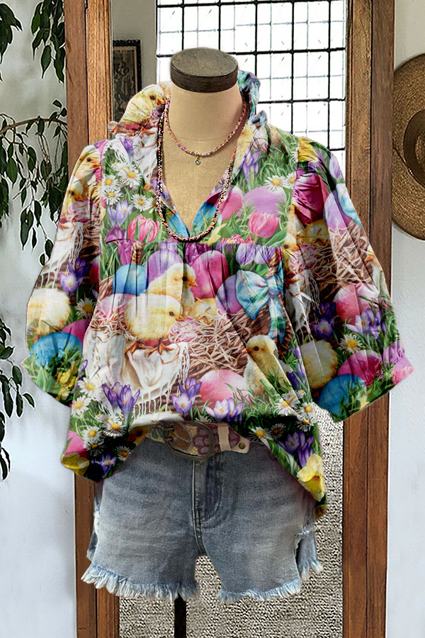 Stay on trend this season in our new chic, v neck top. We especially love the graphic print fabric and think this piece will be a new favorite in your closet!