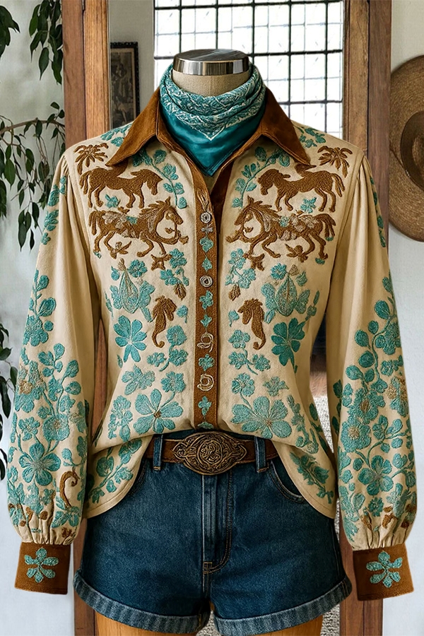 Vintage Western Horse Flower Shirt