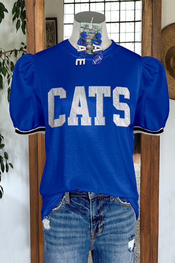 Blue Gameday Football UK Cats Puff Sleeve T-Shirt
