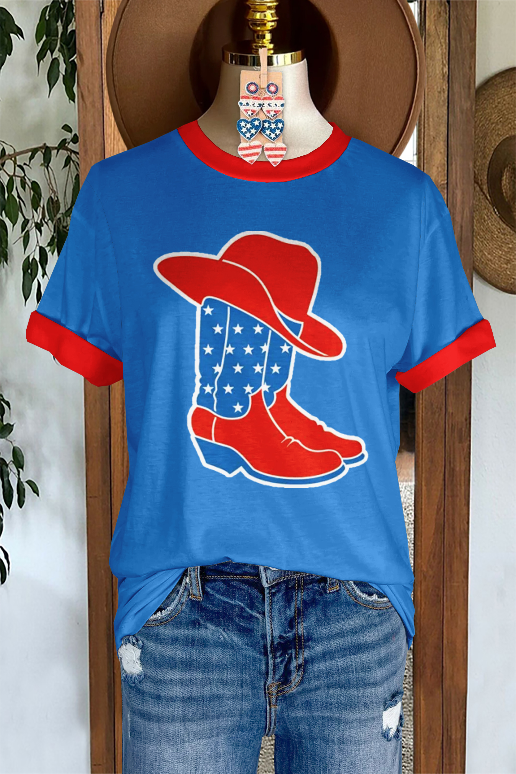 Stay on trend this season in our new classic, round neck t-shirt. We especially love the graphic print fabric and think this piece will be a new favorite in your closet!