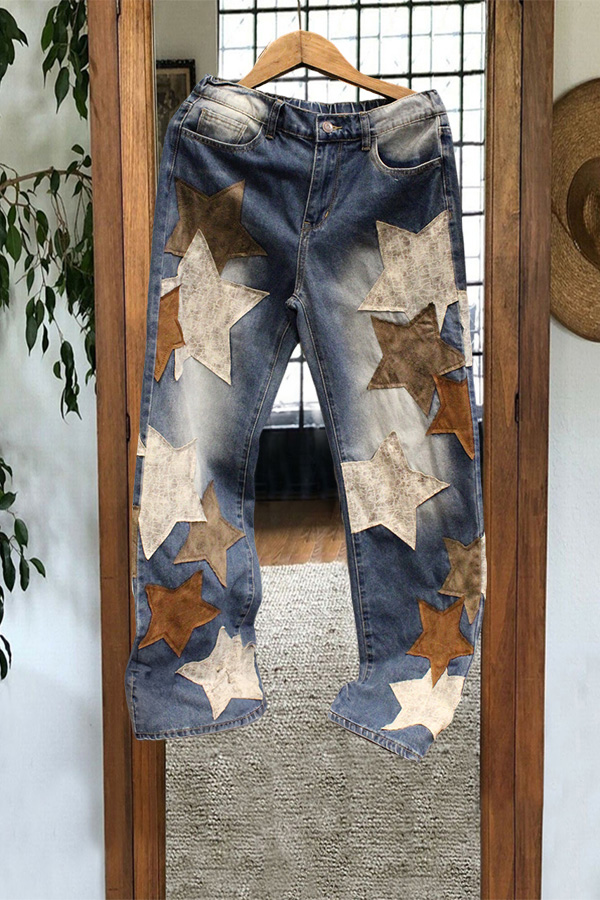 Stay on trend this season in our new casual, wide leg jeans. We especially love the star fabric and think this piece will be a new favorite in your closet!