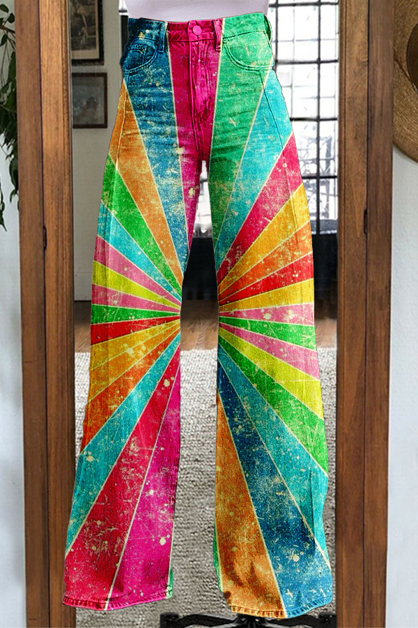 Casual LGBTQ Rainbow Stripe Print Wide-Leg Trousers
