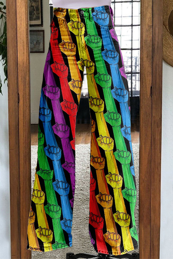 Casual LGBTQ Rainbow Stripe Print Wide-Leg Trousers