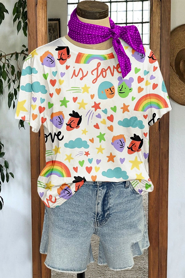 Stay on trend this season in our new casual, round neck t-shirt. We especially love the graphic print fabric and think this piece will be a new favorite in your closet!