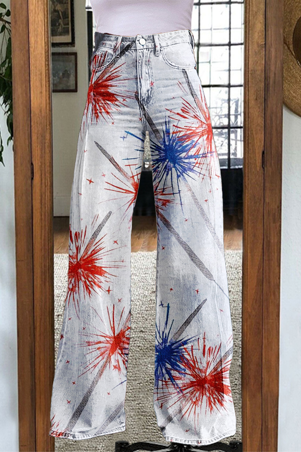 Patriot Day Fairy Stick Fireworks Wide Leg Pants