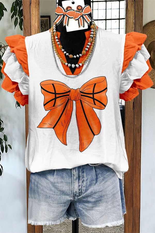Cute Gameday Basketball Print Flying Sleeve Blouse