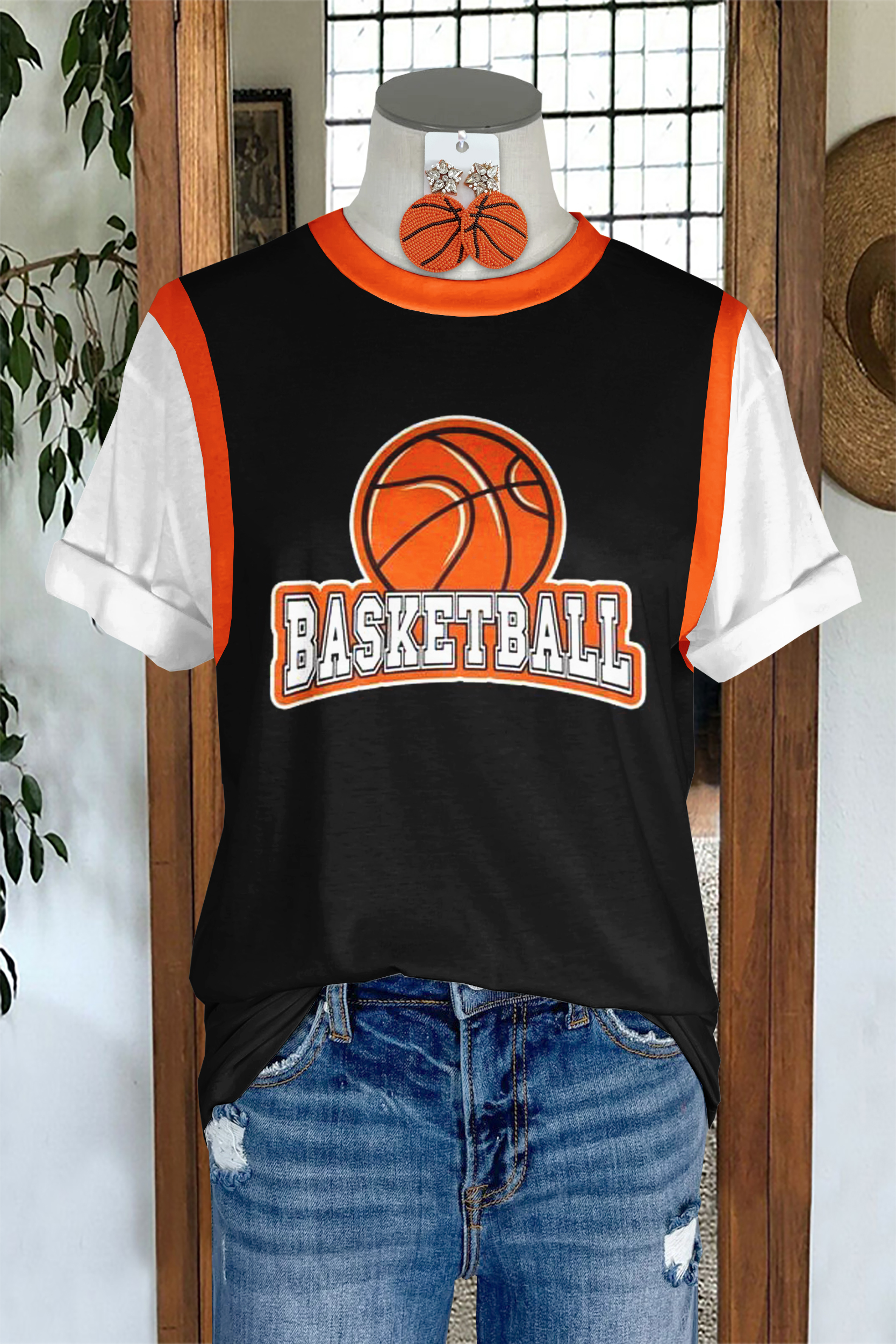 Classic Basketball Game Day Fake Two Piece Print T-Shirt