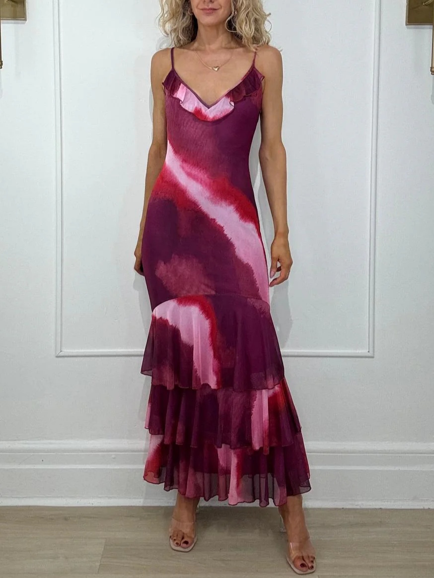 Twilight Tango Ruffle Hem Stretch Slip Dress