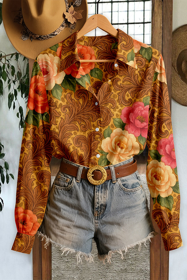 Stay on trend this season in our new casual, shirt collar shirt. We especially love the flower print fabric and think this piece will be a new favorite in your closet!
