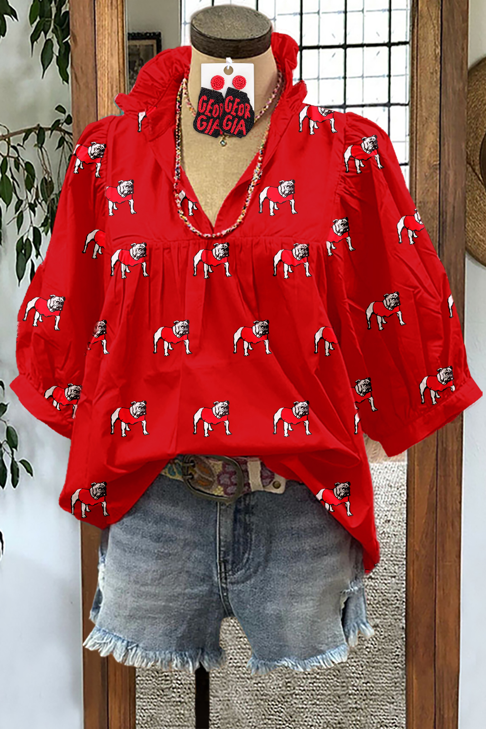 Game Day Georgia Bulldogs Puff Sleeve Blouse
