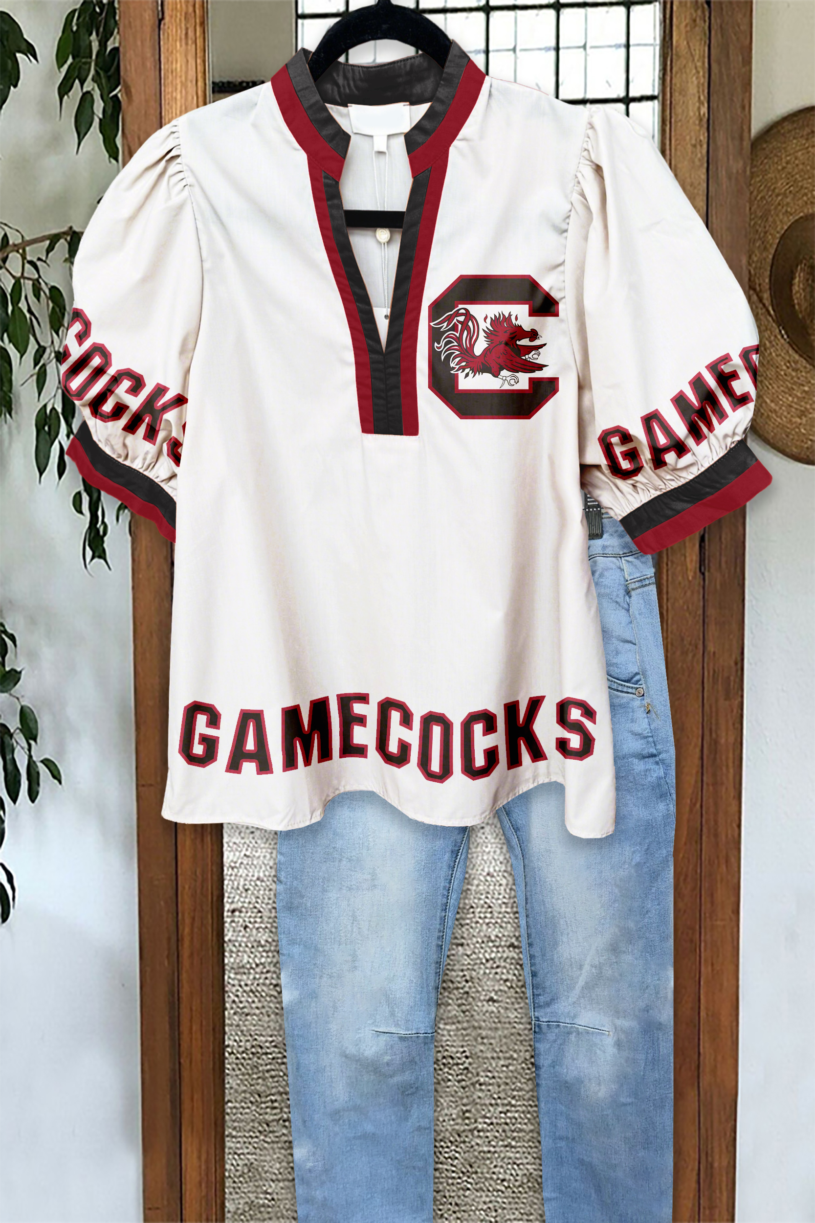 We're glad you've clicked on our new leisurwear blouse as we're really into its classic vibes! The v neck and short sleeve cut make this a great choice for any stylish girl.