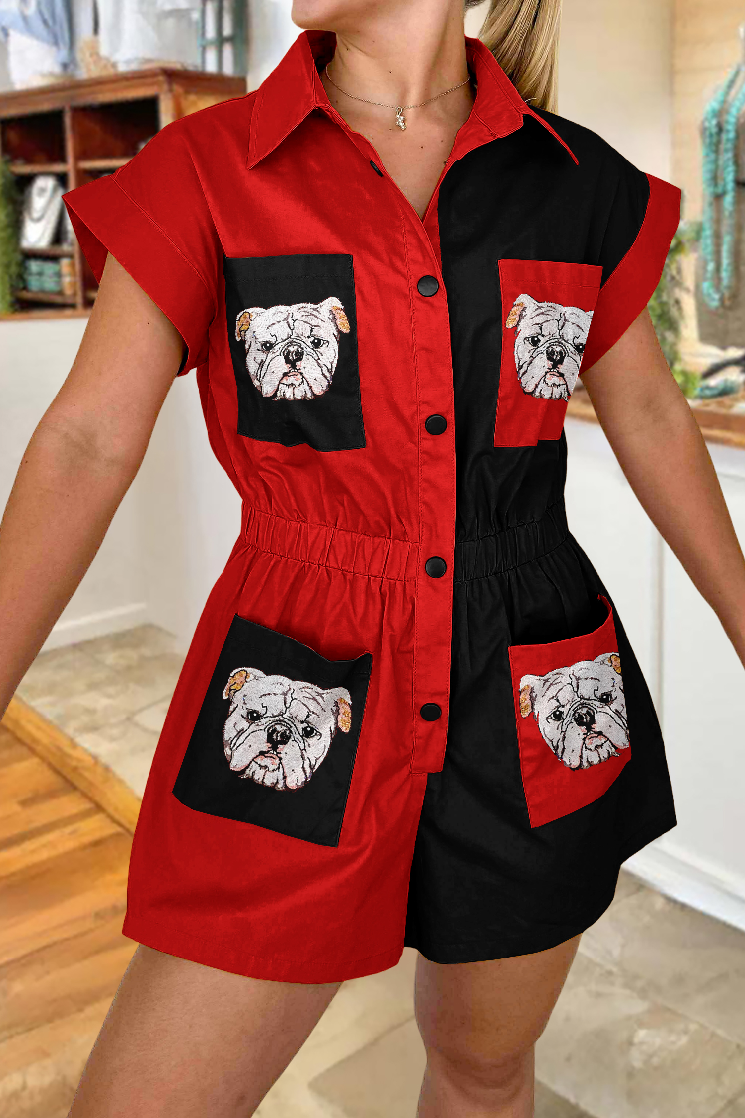 Game Day Georgia Bulldogs Print Contrast Pocket Button Romper