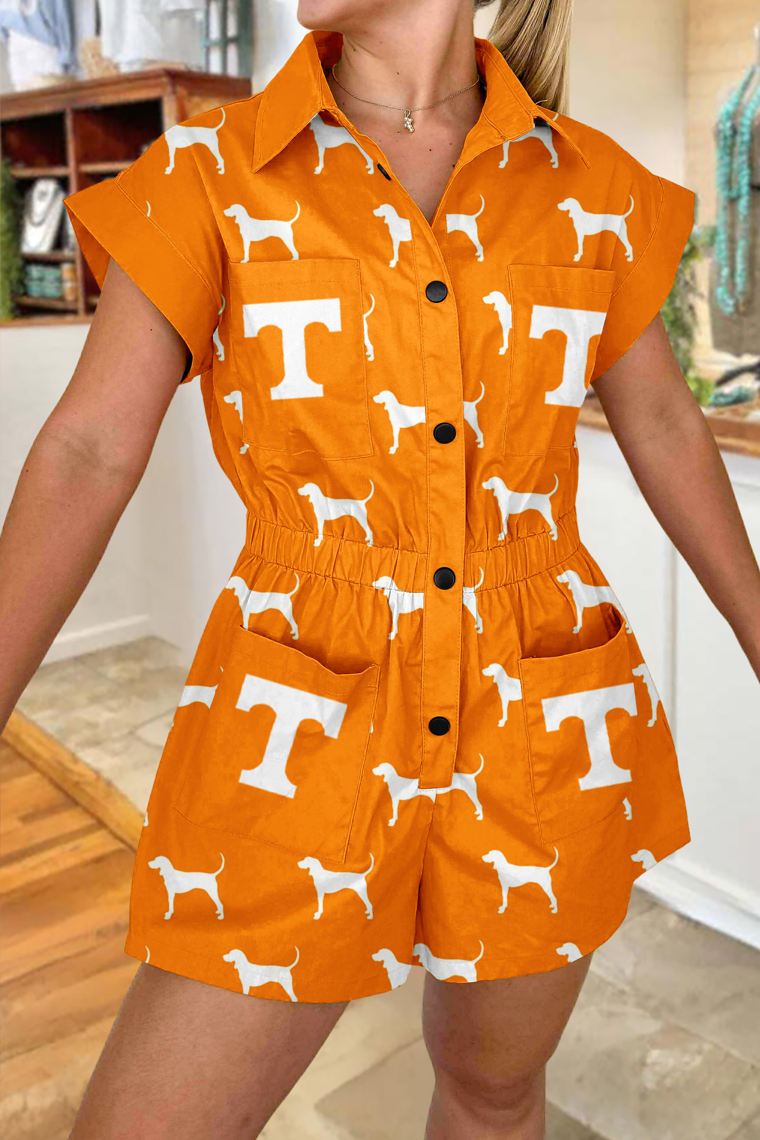 Game Day Tennessee Vols Smokey IX Print Pocket Button-Down Rompers
