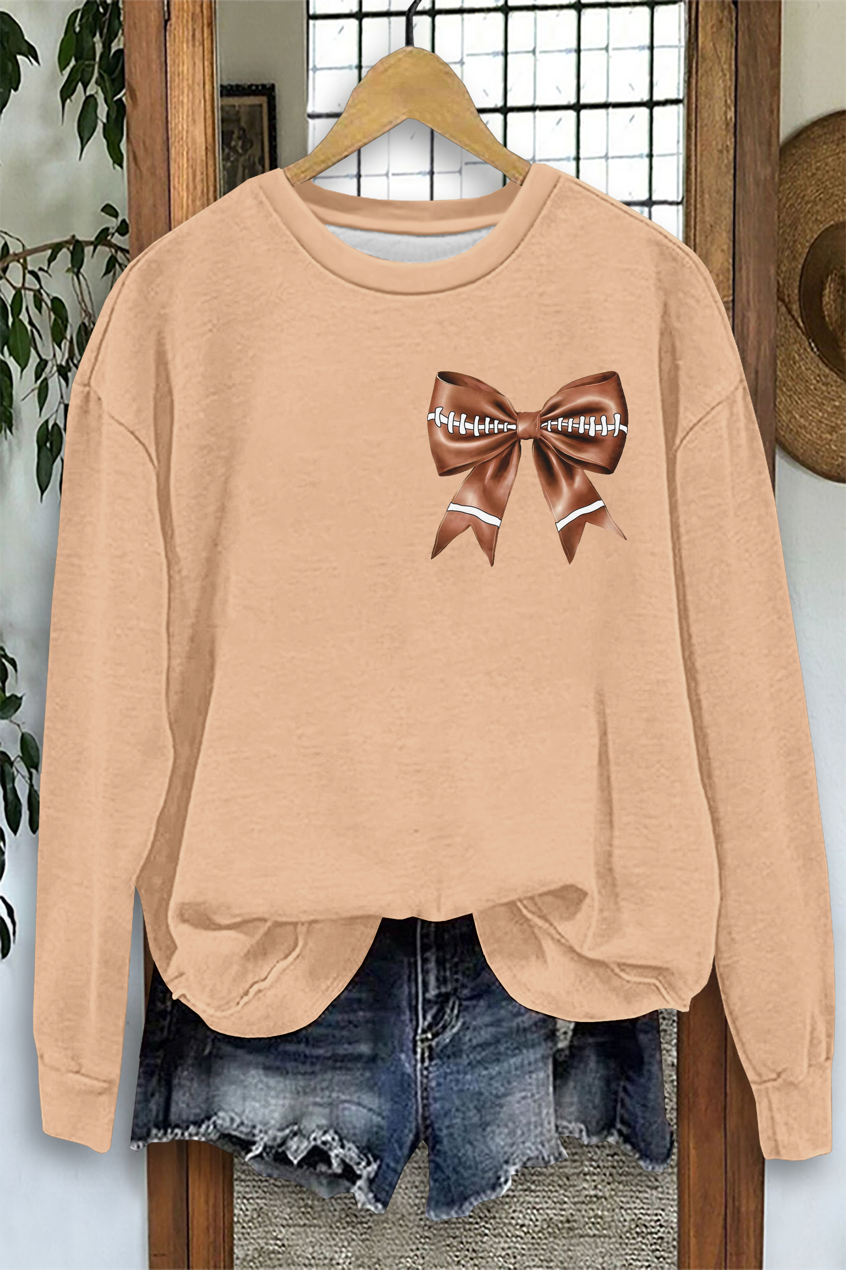 Personalized Customization Bow Rugby Print Game Day Sweatshirt