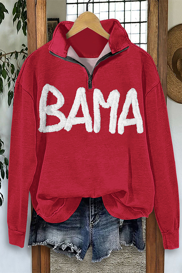 Game Day Red and White Bama Print Zip-Up Sweatshirt