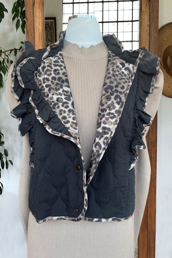 Stay on trend this season in our new casual, mandarin collar vest. We especially love the leopard print fabric and think this piece will be a new favorite in your closet!