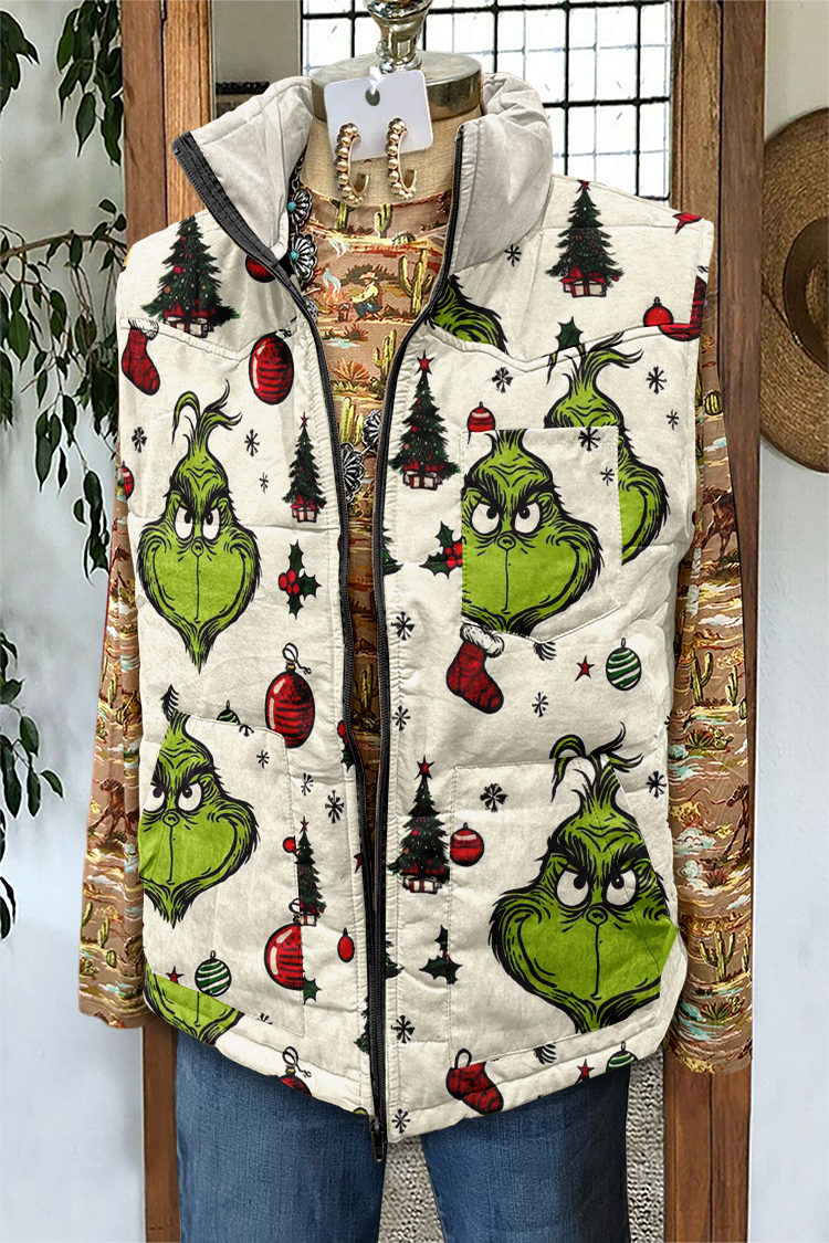 Stay on trend this season in our new cozy, mandarin collar vest. We especially love the graphic print fabric and think this piece will be a new favorite in your closet!