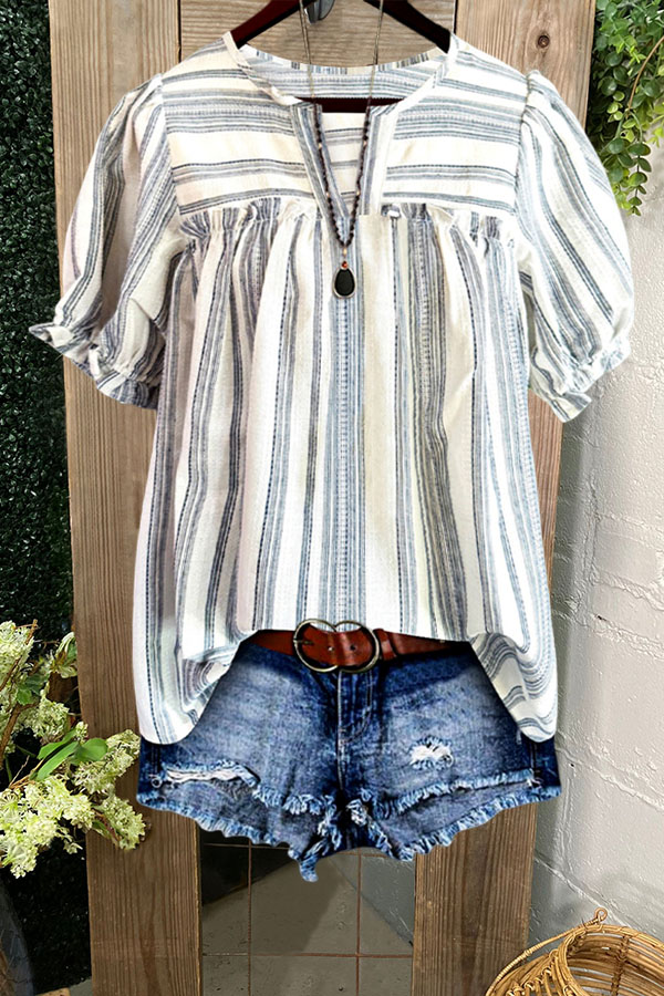 Cotton Striped Print Ruffled Blouse