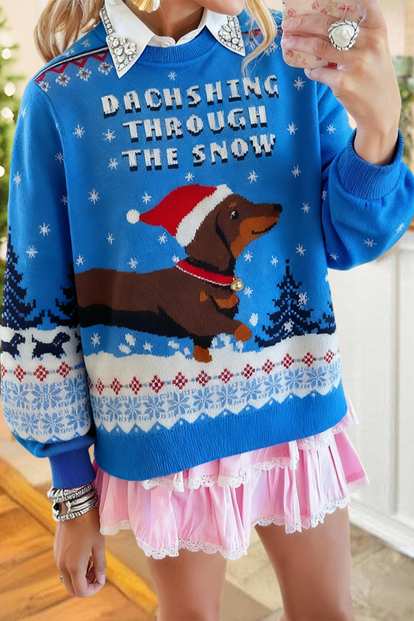 Stay on trend this season in our new casual, round neck sweater. We especially love the graphic print fabric and think this piece will be a new favorite in your closet!