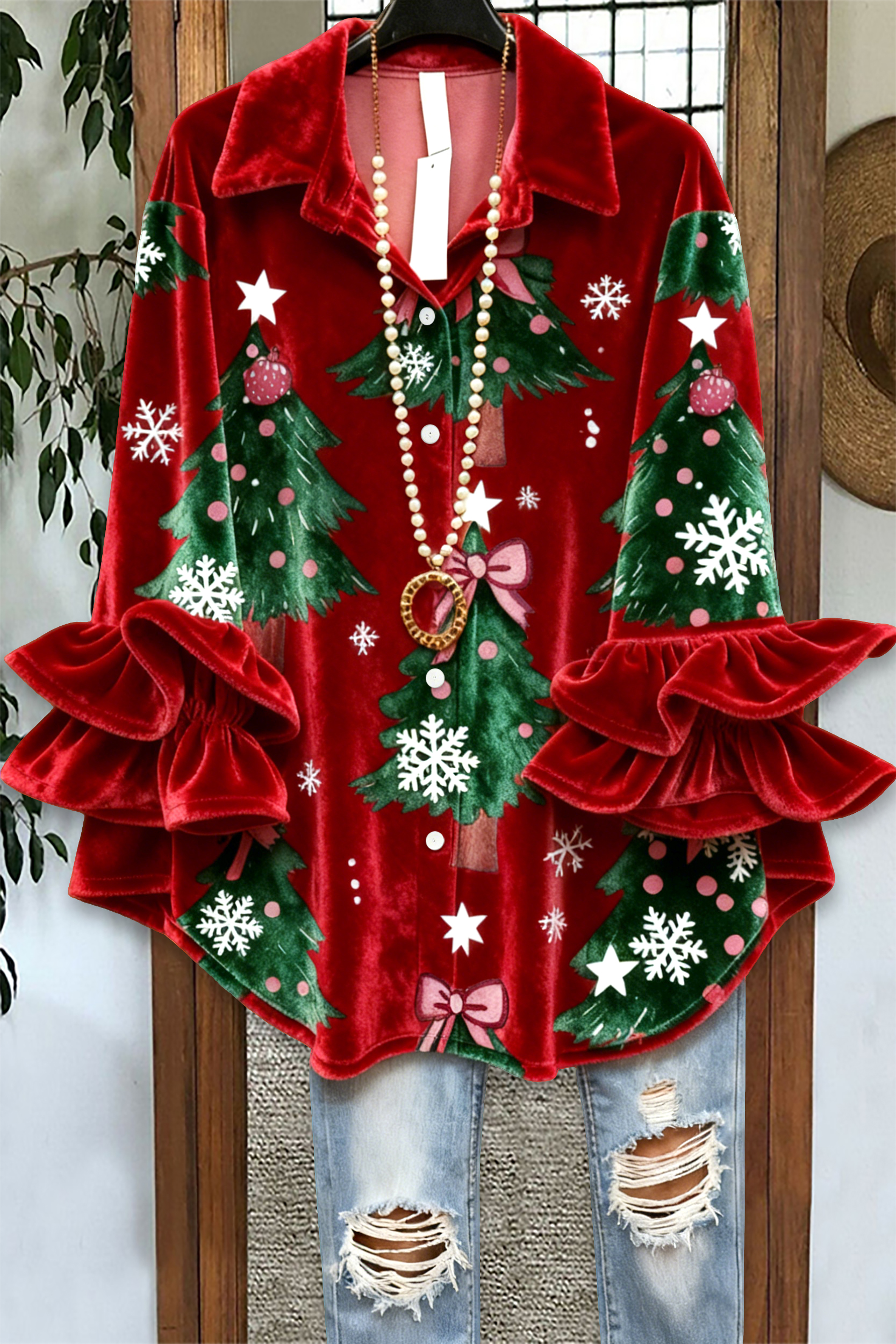Stay on trend this season in our new classic, shirt collar blouse. We especially love the graphic print fabric and think this piece will be a new favorite in your closet!